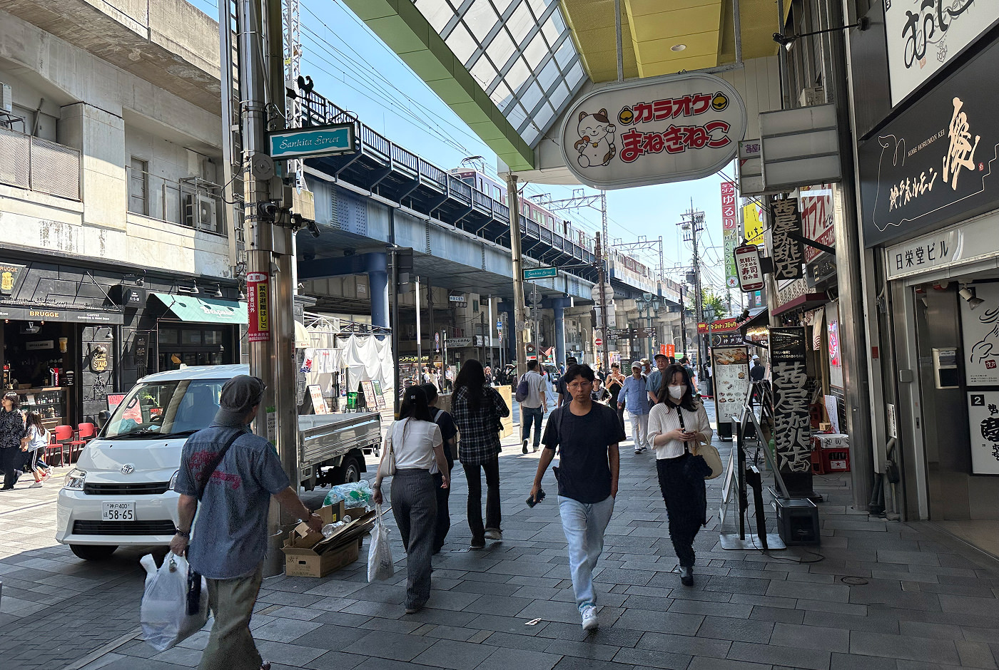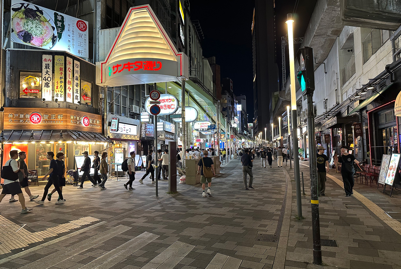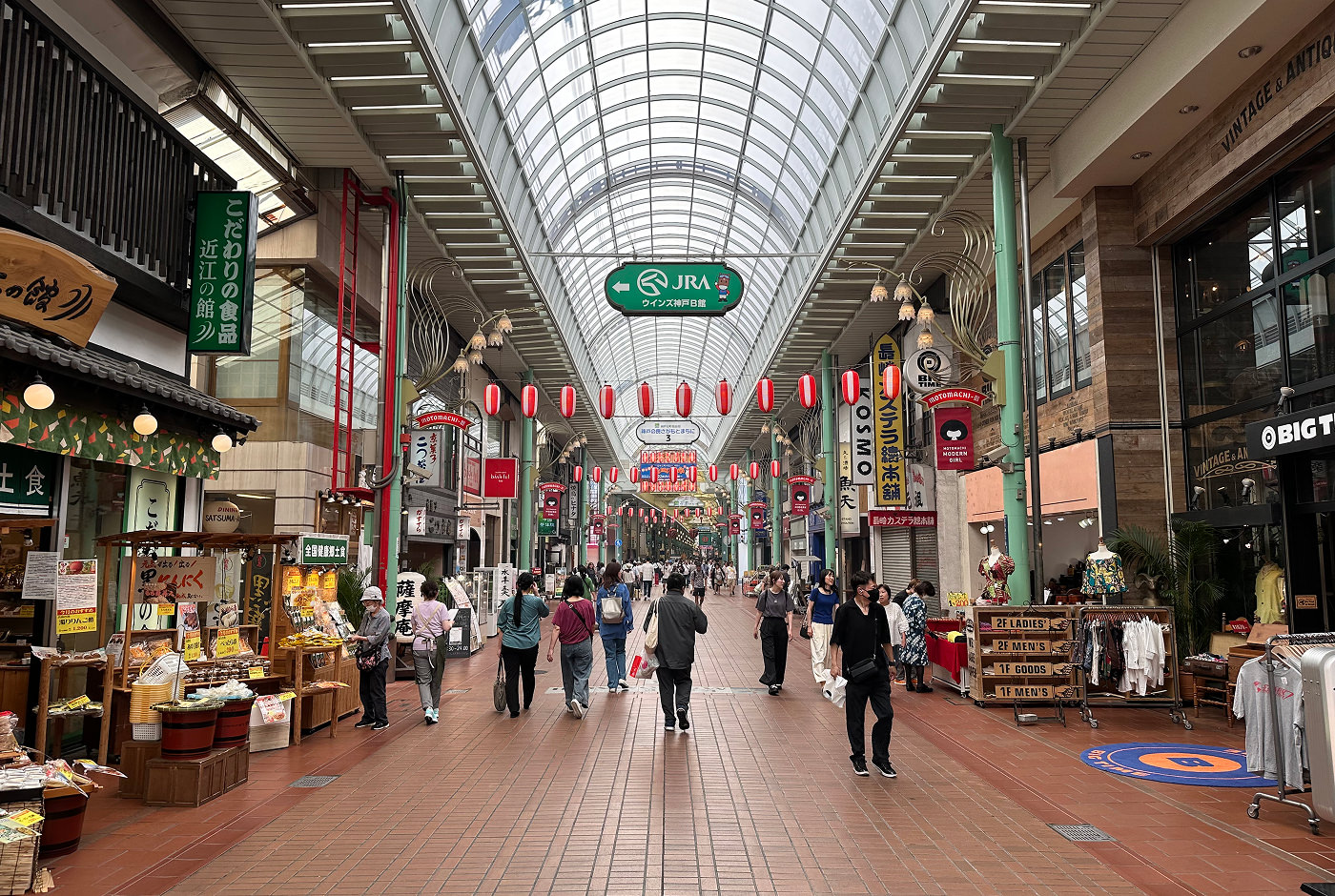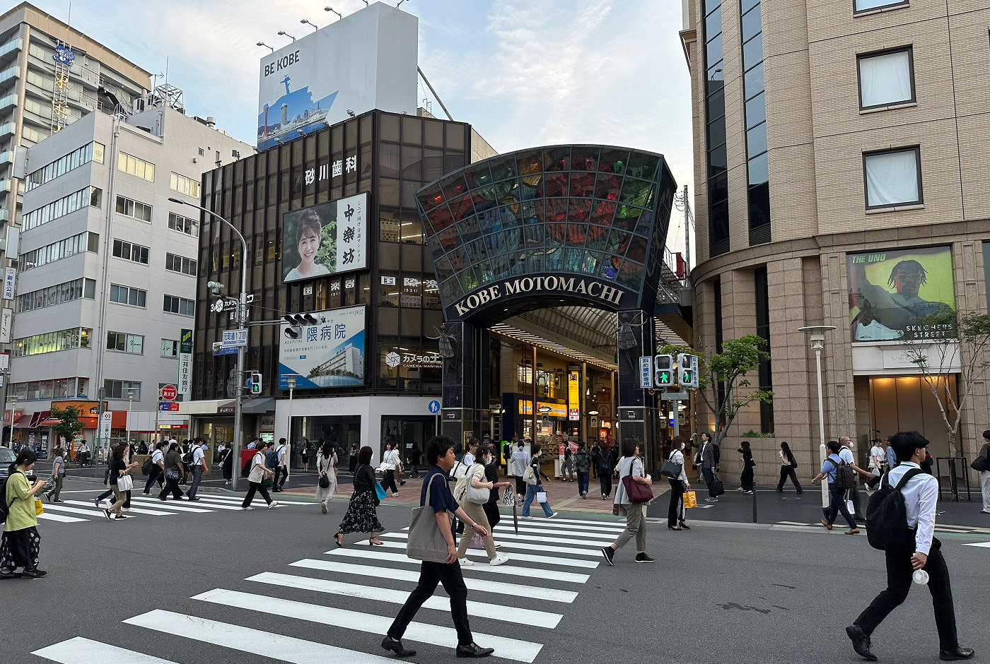 Detta område börjar precis utanför tågstationen Kobe-Sannomiya Station och bjuder på en skönt energisk men också samtidigt tillbakalutad stämning.